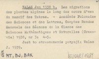 WALAS Jan 1938 Die Wanderungen der Alpenpflanzen längs der Tatra-Flüsse.