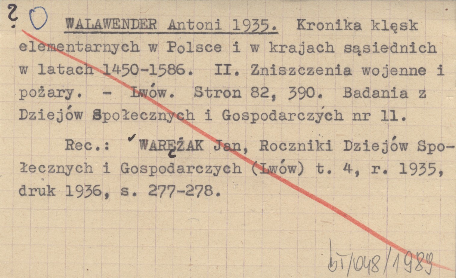 WALAWENDER Antoni 1935 Kronika klęsk elementarnych w Polsce i w krajach sąsiednich w latach 1450-1586. II. Zniszczenia wojenne i pożary.