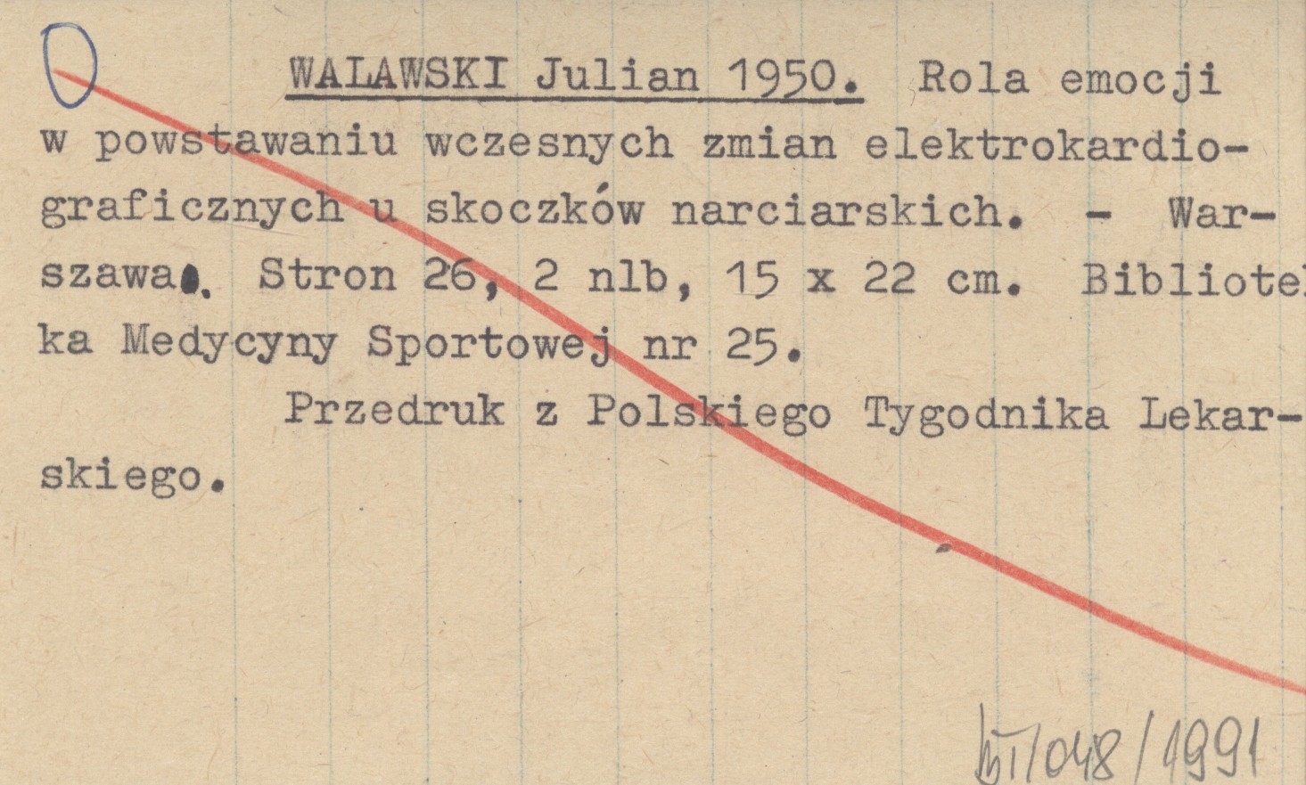 WALAWSKI Julian 1950 Rola emocji w powstaniu wczesnych zmian elektrokardiograficznych u skoczków narciarskich.