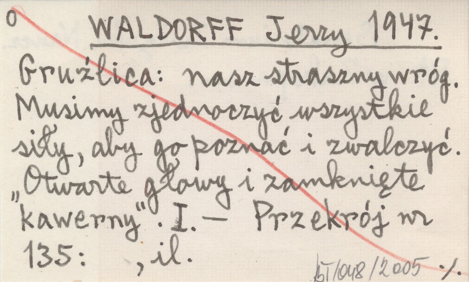 WALDORFF Jerzy 1947 Gruźlica: nasz straszny wróg. Musimy zjednoczyć wszystkie siły, aby go poznać i zwalczyć. "Otwarte głowy i zamknięte kawerny". I.