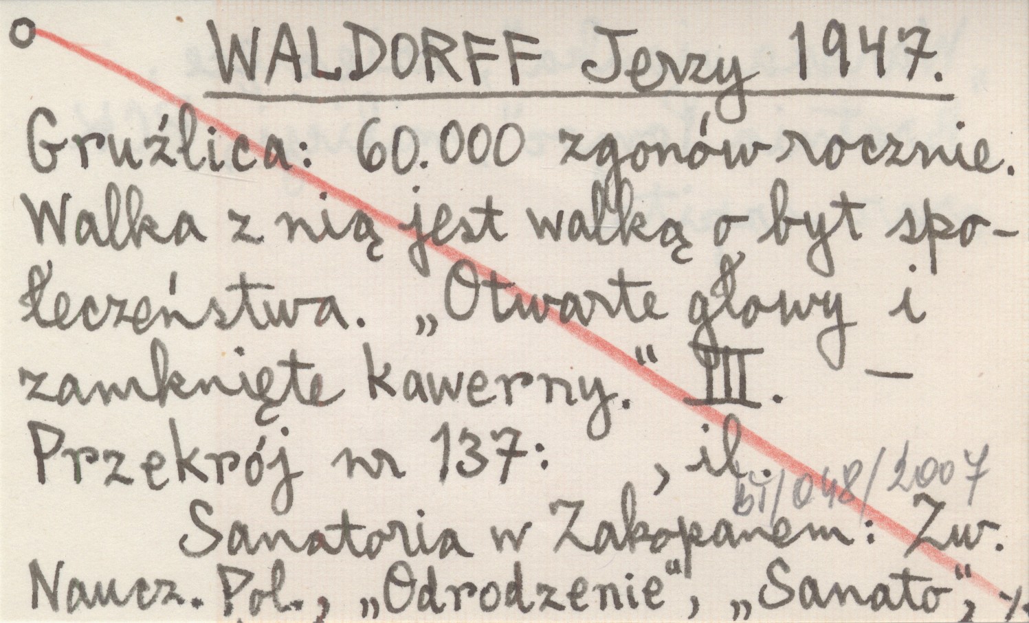 WALDORFF Jerzy 1947 Gruźlica: 60.000 zgonów rocznie. Walka z nią jest walką o byt społeczeństwa. "Otwarte głowy i zamknięte kawerny". III.