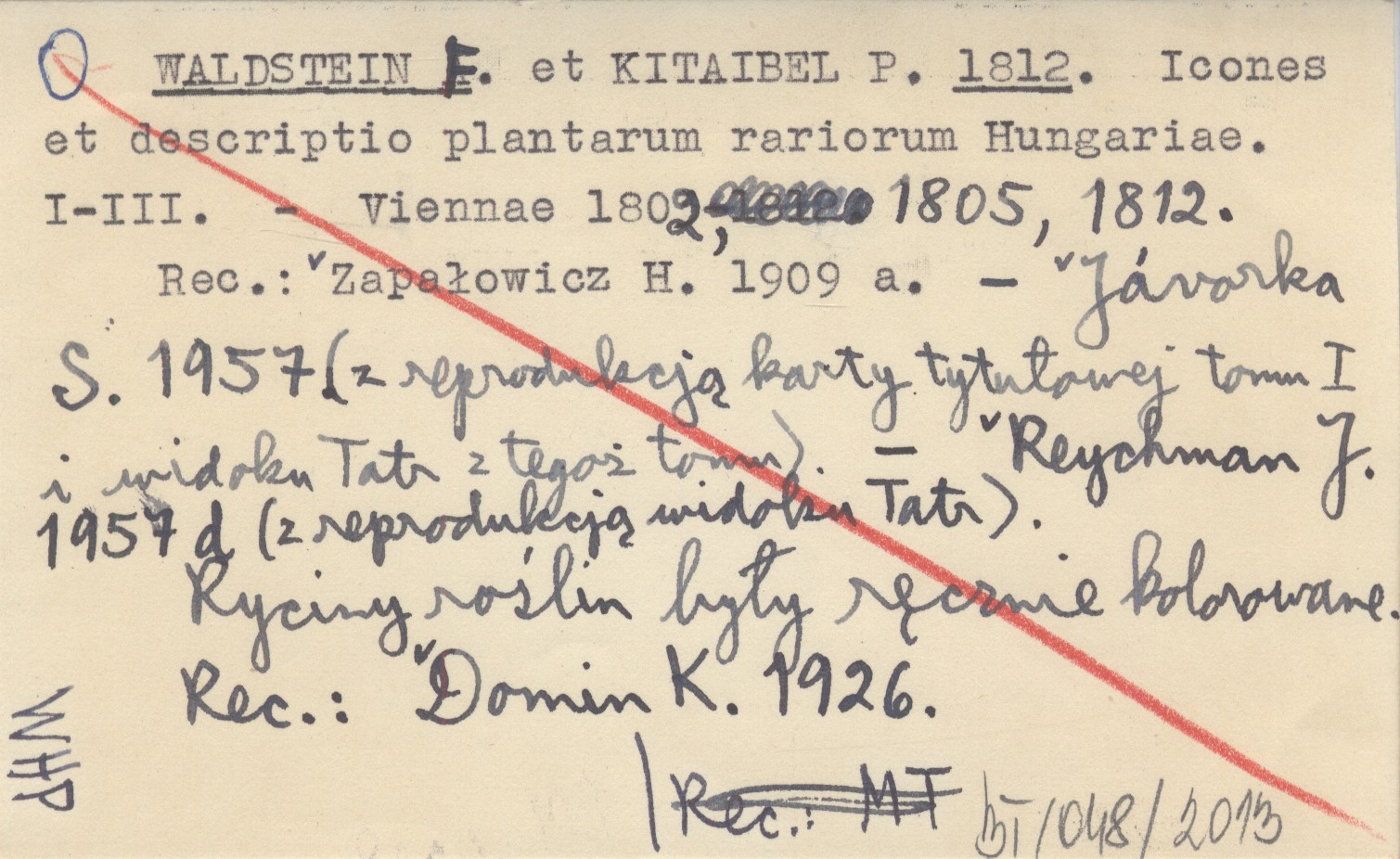 Viennae , 1802, 1805, 1812. Ryciny roślin były ręcznie kolorowane. REC: ZAPAŁOWICZ H. 1909 a ; JÁVORKA S. 1957 (z reprodukcją karty tytułowej tomu I i widoku Tatr z tegoż tomu) ; REYCHMAN J. 1957 d (z reprodukcją widoku Tatr) ; DOMIN K. 1926 ;