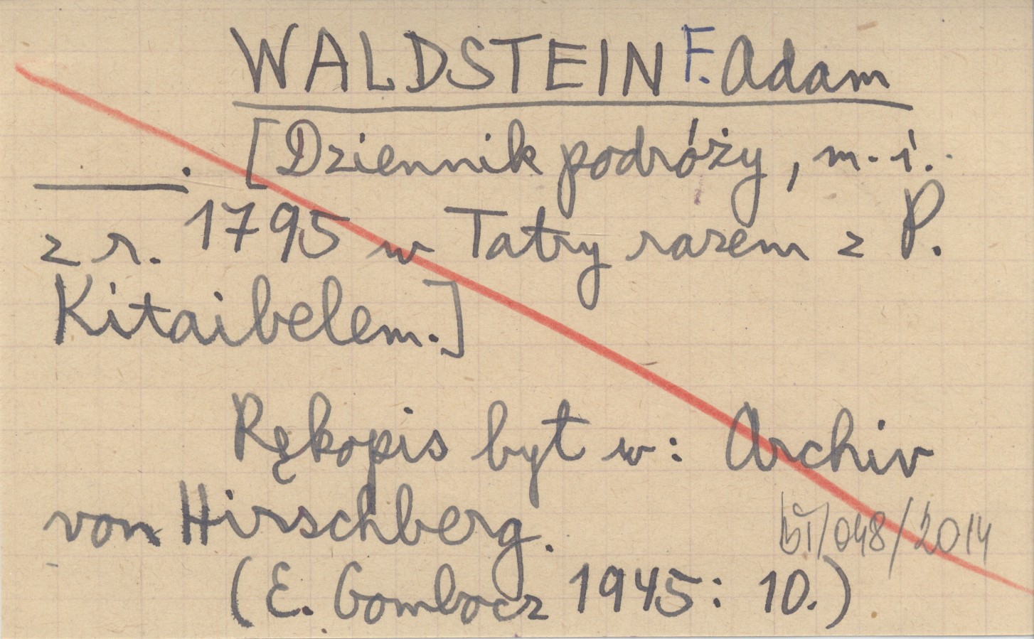 WALDSTEIN F. Adam [Dziennik podróży, m.i. z r. 1795 w Tatry razem z P. Kitaibelem].