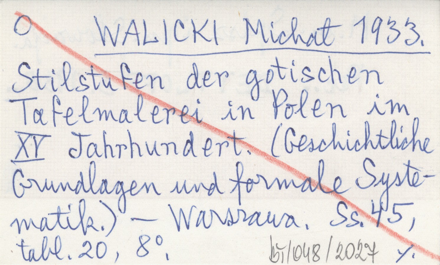 WALICKI Michał 1933 Stilstufen der gotischen Tafelmalerei in Polen im XV Jahrhundert. (Geschichtliche Grundlagen und formale Systematik).