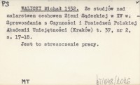 WALICKI Michał 1934 Ze studjów nad malarstwem cechowem Ziemi Sądeckiej w XV wieku.