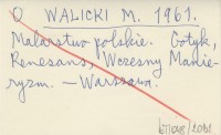 WALICKI M. 1961 Malarstwo polskie. Gotyk, Renesans, Wczesny Manieryzm.