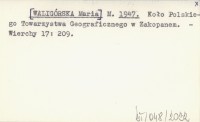M. [WALIGÓRSKA Maria] 1947 Koło Polskiego Towarzystwa Geograficznego w Zakopanem.
