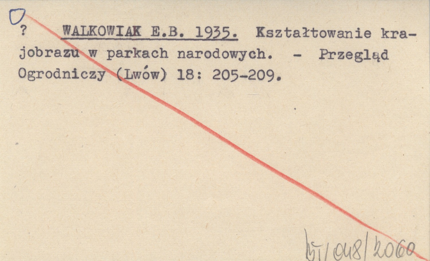 WALKOWIAK E.B. 1935 Kształtowanie krajobrazu w parkach narodowych.