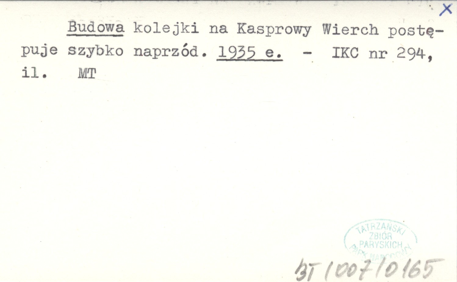 Budowa kolejki na Kasprowy Wierch postępuje szybko naprzód. 1935 e