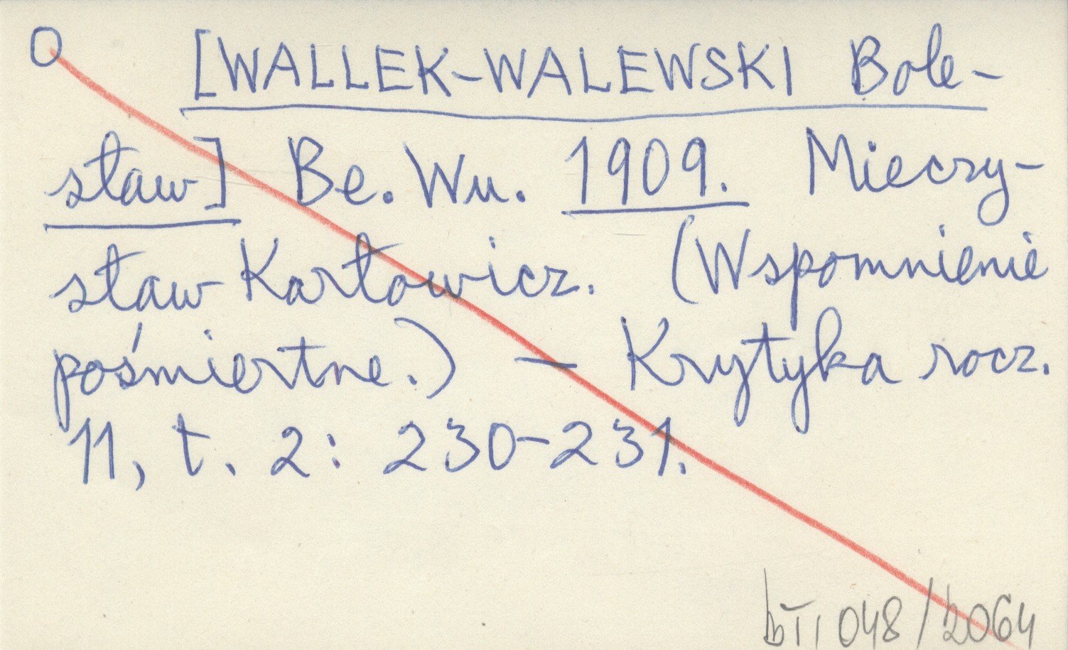 Be. Wu. [WALLEK-WALEWSKI Bolesław] 1909 Mieczysław Karłowicz. (Wspomnienie pośmiertne).
