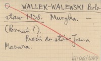 WALLEK-WALEWSKI Bolesław 1909 Zygmunt Noskowski.