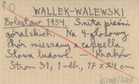 WALLEK-WALEWSKI Bolesław 1954 Suita pieśni góralskich. Na 4-głosowy chór mieszany a cappella. Słowa ludowe.