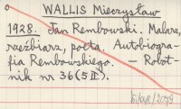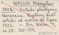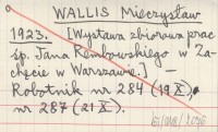 WALLIS Mieczysław 1923 [Wystawa zbiorowa prac śp. Jana Rembowskiego w Zachęcie w Warszawie].