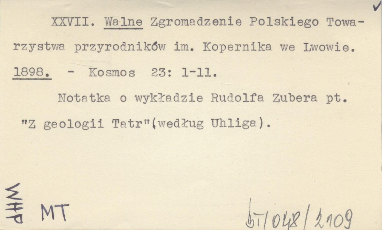 Kosmos, 23: 1-11. Notatka o wykładzie Rudolfa Zubera pt. "Z geologii Tatr" (według Uhliga).