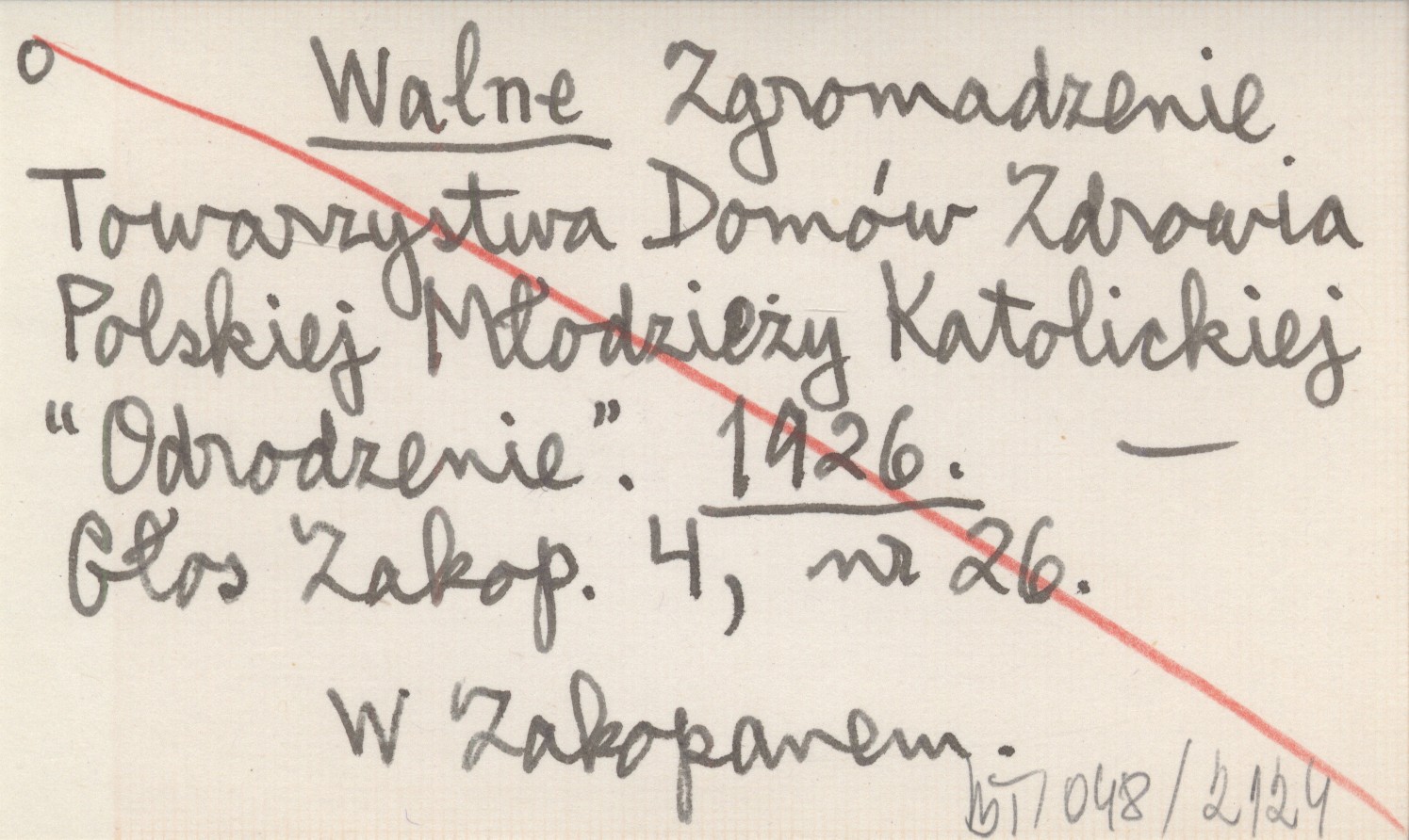 Walne Zgromadzenie Towarzystwa Domów Zdrowia Polskiej Młodzieży Katolickiej "Odrodzenie". 1926