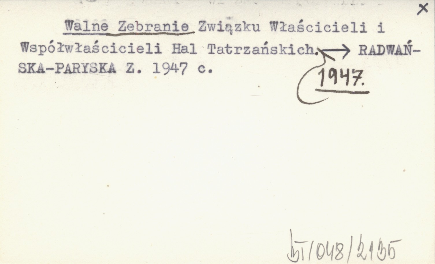 Walne Zebranie Związku Właścicieli i Współwłaścicieli Hal Tatrzańskich. 1947