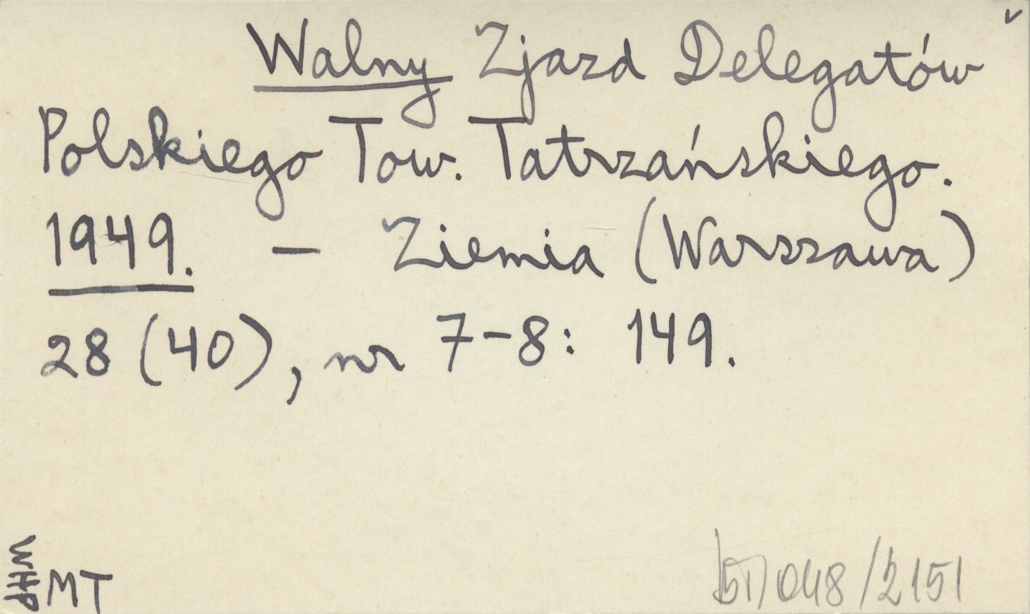 Walny Zjazd Delegatów Polskiego Tow. Tatrzańskiego. 1949