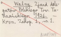 Walny Zjazd delegatów Polskiego Tow. Tatrzańskiego. 1926