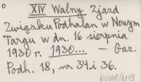 XIV Walny Zjazd Związku Podhalan w Nowym Targu w dn. 16 sierpnia 1930 r. 1930...