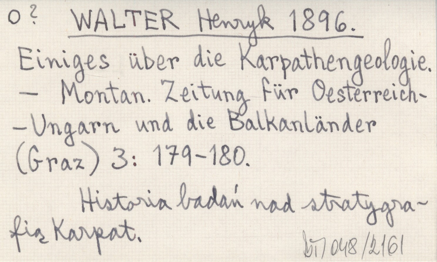 Montan. Zeitung für Oesterreich-Ungarn und die Balkanländer (Graz) , 3: 179-180. Historia badań nad stratygrafią Karpat.