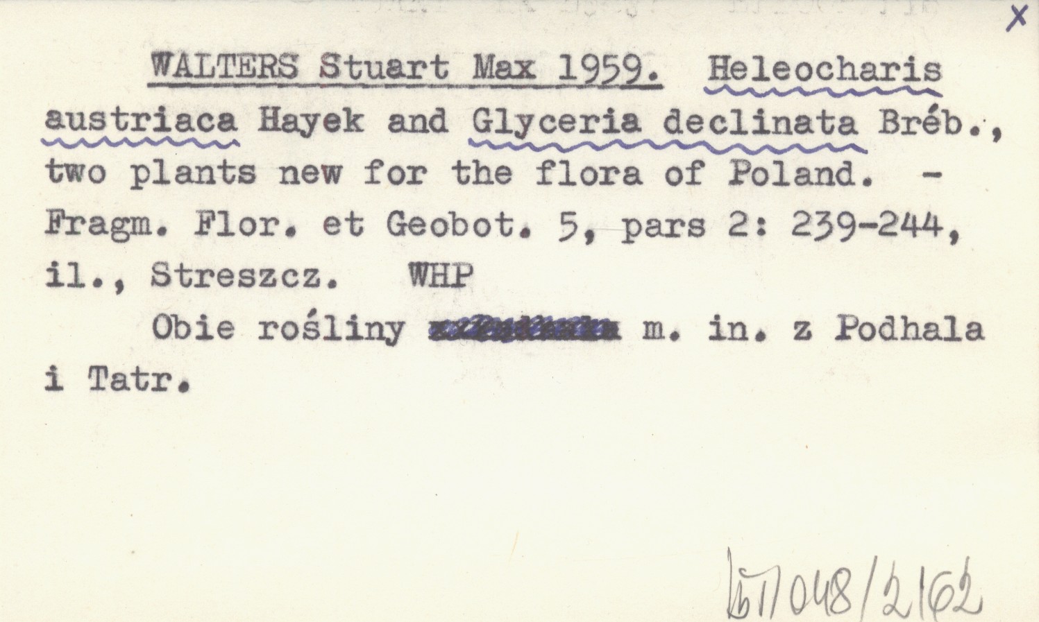 WALTERS Stuart Max 1959 Heleocharis austriaca Hayek and Glyceria declinata Bréb., two plants new for the flora of Poland.