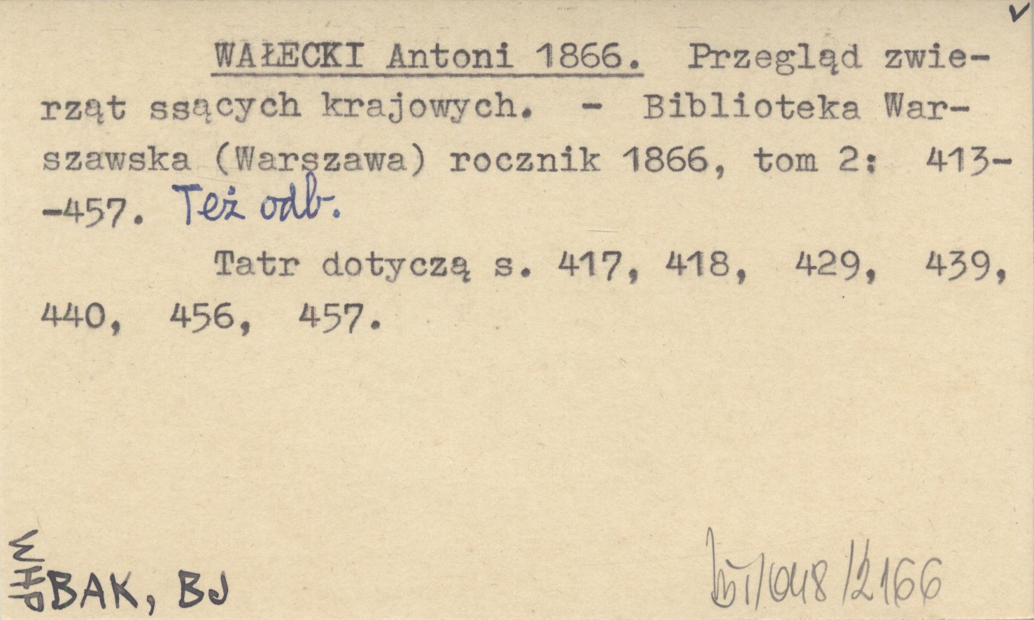WAŁECKI Antoni 1866 Przegląd zwierząt ssących krajowych.