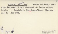 WAŁECKI Antoni 1881 Fauna zwierząt ssących Warszawy i jej stosunek do fauny całego kraju.