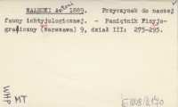 WAŁECKI Antoni 1889 Przyczynek do naszej fauny ichtyjologicznej.