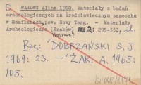 WAŁOWY Alina 1960 Materiały z badań archeologicznych na średniowiecznym zameczku w Szaflarach, pow. Nowy Targ.