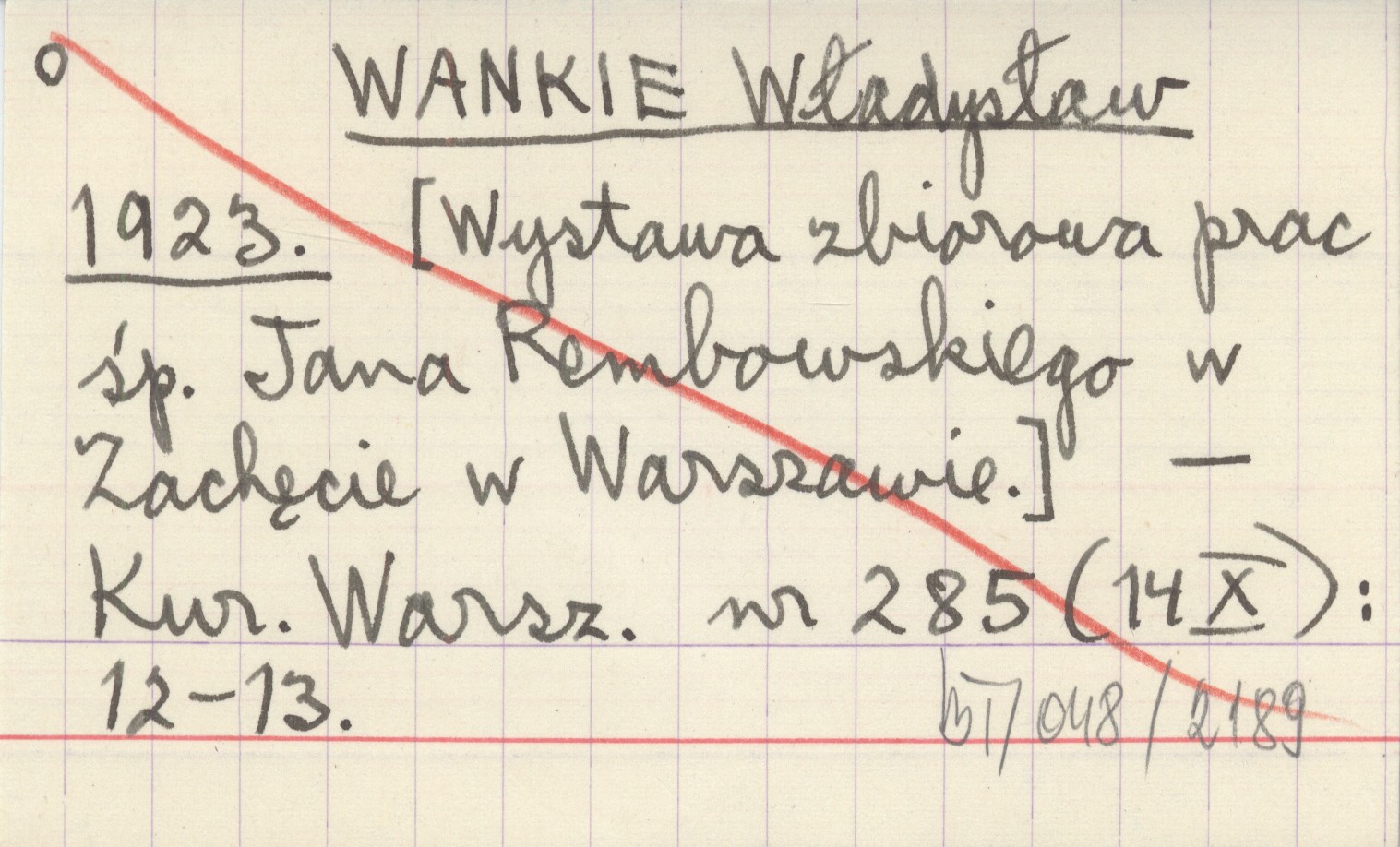 WANKIE Władysław 1923 [Wystawa zbiorowa prac śp. Jana Rembowskiego w Zachęcie w Warszawie].