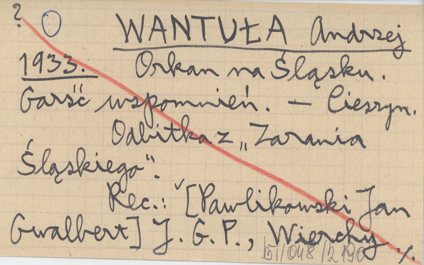 WANTUŁA Andrzej 1933 Orkan na Śląsku. Garść wspomnień.