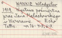 WANKIE Władysław 1919 Wystawa pośmiertna prac Jana Małachowskiego w Warszawie.