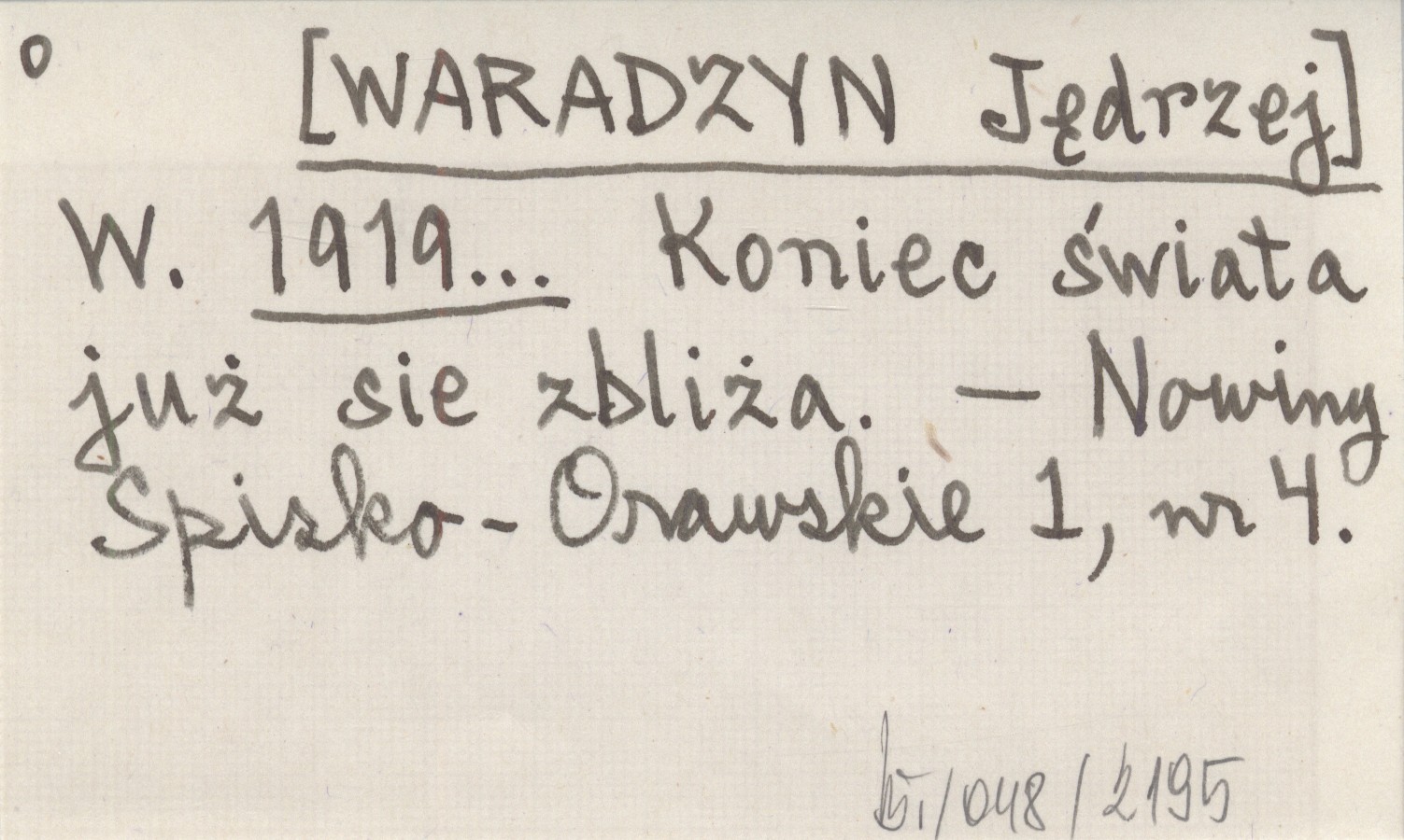 W. [WARADZYN Jędrzej] 1919... Koniec świata już się zbliża.