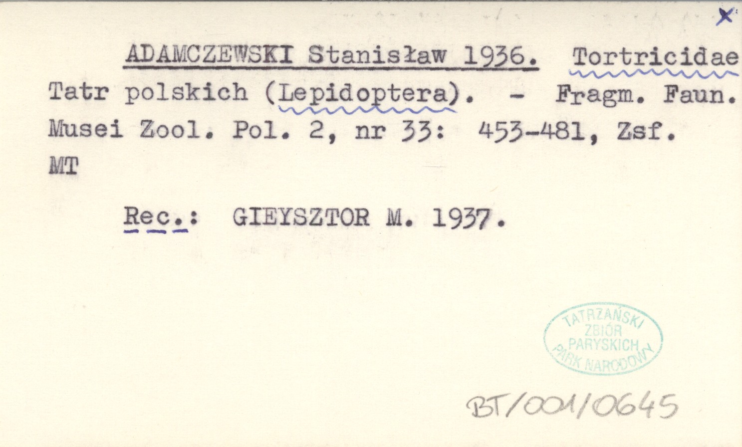 ADAMCZEWSKI Stanisław 1936 Tortricidae Tatr polskich (Lepidoptera).
