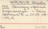 WARCHOLIK Stanisław 1931 Okruszyny wspomnień krajoznawczych.