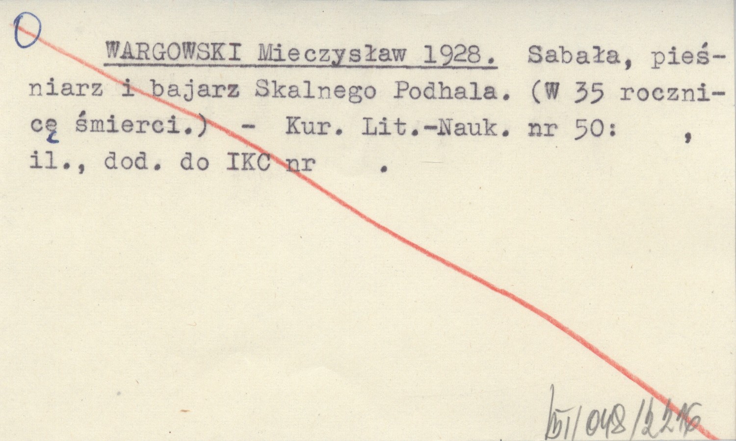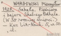 WARGOWSKI Mieczysław 1928 Sabała, pieśniarz i bajarz Skalnego Podhala. (W 35 rocznicę śmierci).