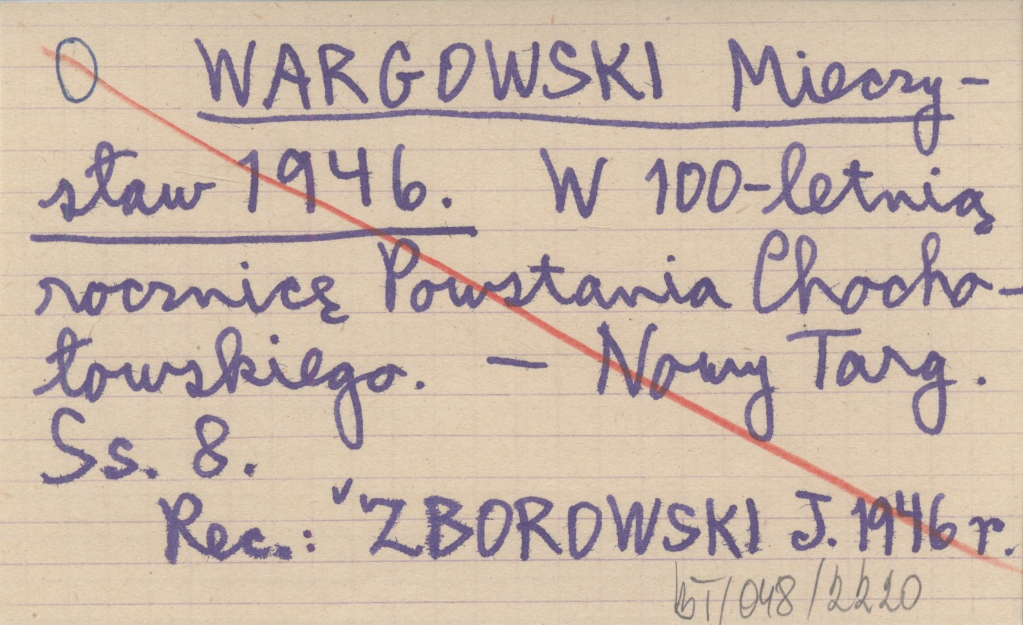 WARGOWSKI Mieczysław 1946 W 100-letnią rocznicę Powstania Chochołowskiego.