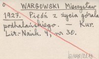 WARGOWSKI Mieczysław 1927 Pieśń z życia górala podhalańskiego.