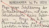 WARHANEK W. Fr. 1857 Phys.-geogr. Schilderung der Centralkarpaten, mit einer Schichtenkarte dieses Gebirges.