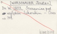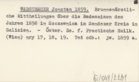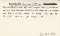 WARSCHAUER Jonatan 1859 a Brunnenärztliche Mittheilungen über die Badesaison des Jahres 1858 in Szczawnica im Sandezer Kreis in Galizien.