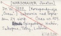 Dr. W. [WARSCHAUER Jonatan] 1857 [Korespondencja "Czasu".] Lubownia nad Popradem 24 sierp.