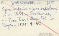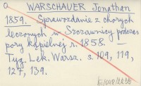 WARSCHAUER J. 1859 Sprawozdanie z pory kąpielowej w r. 1859 w Szczawnicy.