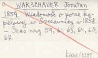 WARSCHAUER Jonatan 1859 Wiadomość o porze kąpielowej w Szczawnicy w 1858.