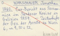 WARSCHAUER Jonathan 1860 Cur-Bericht aus Szczawnica im Sandecer Kreise in Galizien 1859.