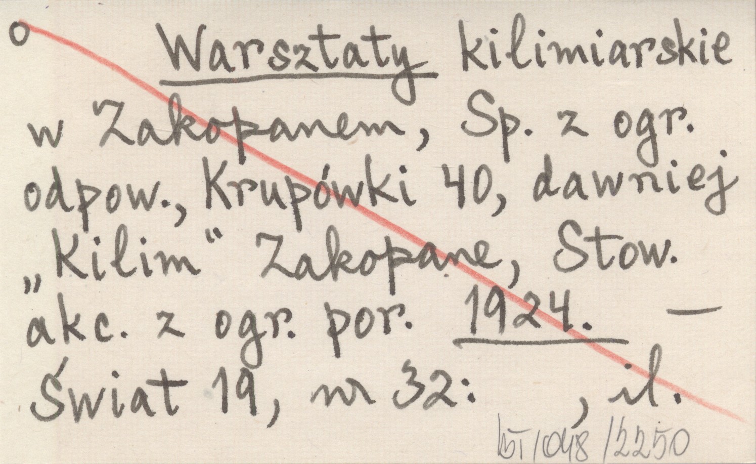 Warsztaty kilimiarskie w Zakopanem, Sp. z ogr. odpow., Krupówki 40, dawniej "Kilim" Zakopane, Stow. akc. z ogr. por. 1924