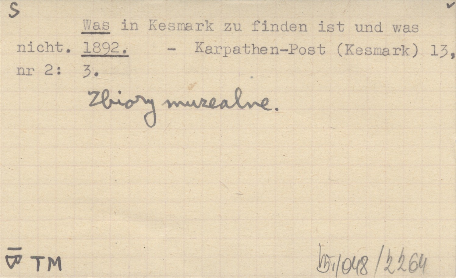 Karpathen-Post (Kesmark) , 13, nr 2: 3. Zbiory muzealne.