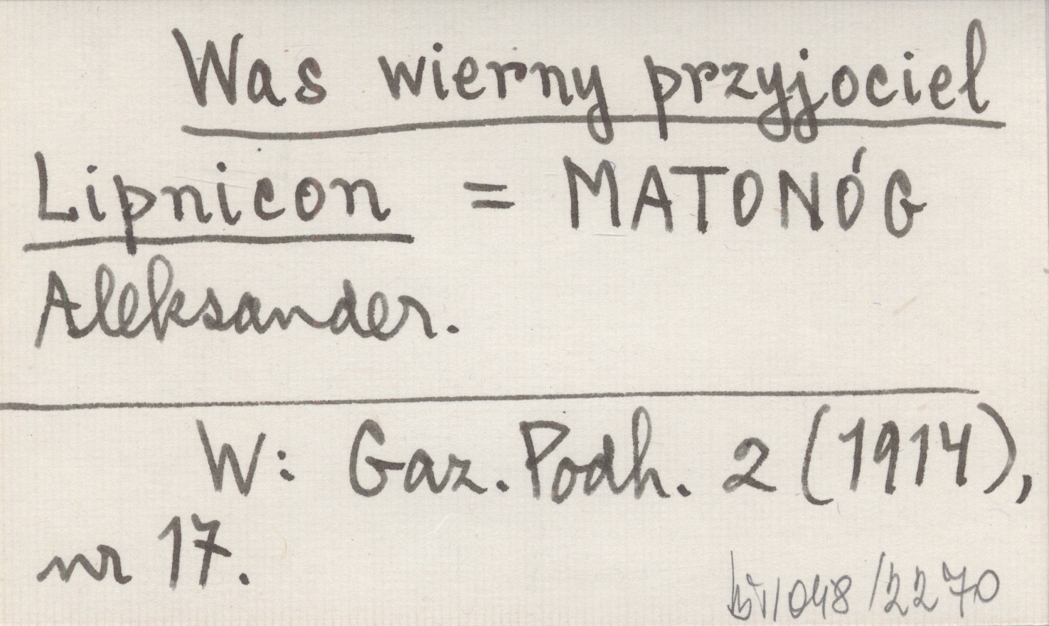 Was wierny przyjociel Lipnicon MATONÓG Aleksander Gazeta Podhalańska 2 (1914), nr 17.