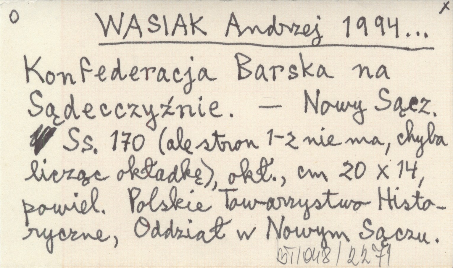 WASIAK Andrzej 1994... Konfederacja Barska na Sądecczyźnie.