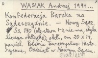 WASIAK Andrzej 1994... Konfederacja Barska na Sądecczyźnie.