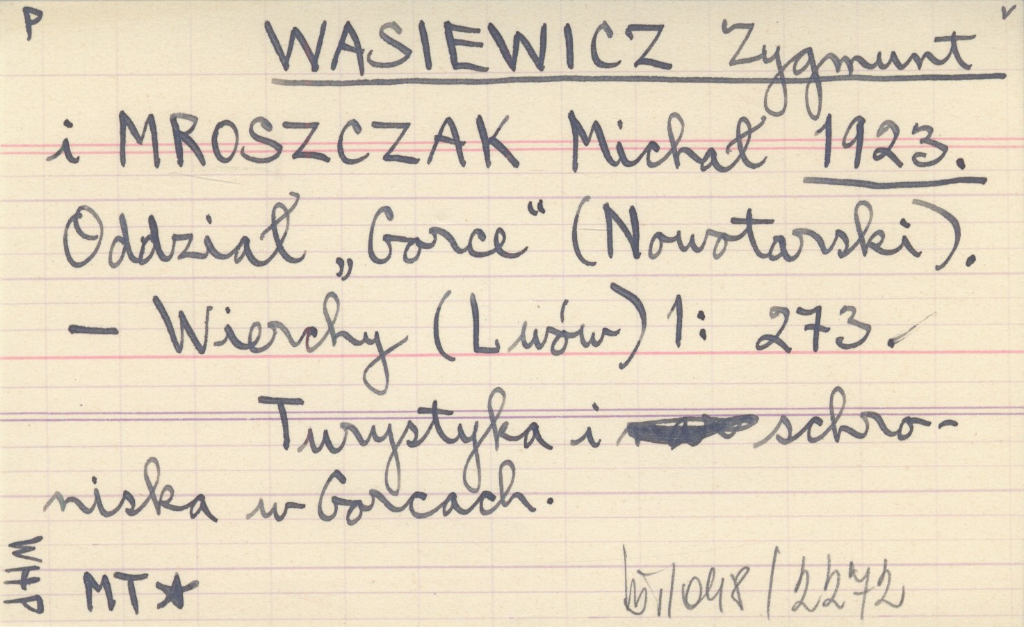 WASIEWICZ Zygmunt MROSZCZAK, Michał. ; 1923 Oddział "Gorce" (Nowotarski).